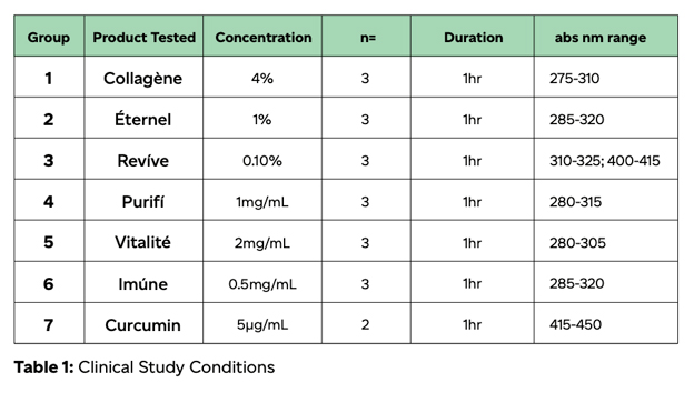 Predicted cellular absorption and bioavailability percentages of THREE’s products are shown in Figure 1 below. Actual numbers are as follows: Éternel = 95%, Purifí = 88%, Collagène = 73%, Vitalité = 44%, Imúne = 44%, Revíve = 30%, and curcumin (Organic Control) = 10.